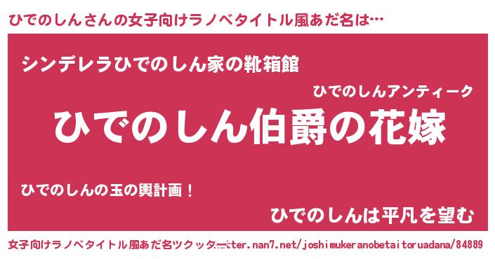 | 男性向けラノベタイトル風あだ名 | 『やはりひでのしんの青春ラブコメはまちがっている 』 |