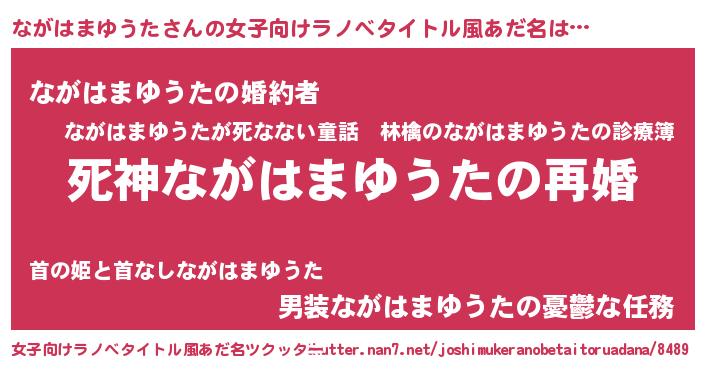 | ヒーロー風カッコイイあだ名 | 『慈愛の使者ながはまゆうた』 |