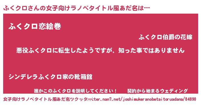 | 男性向けラノベタイトル風あだ名 | 『この素晴らしい世界にふくクロを!』 |