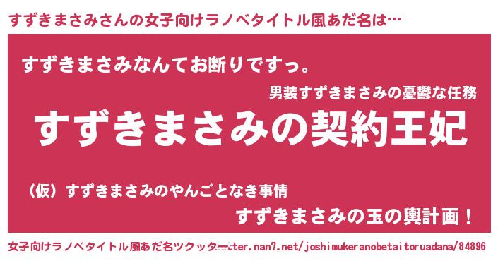 | 男性向けラノベタイトル風あだ名 | 『すずきまさみという概念が存在しない退屈な世界 』 |
