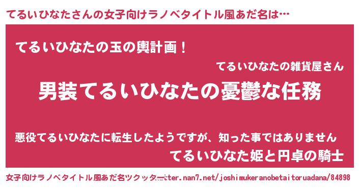 | 胡散臭い通販商品みたいなあだ名 | 『億万長者になれるブレスレット…その名も「てるいひなた」』 |