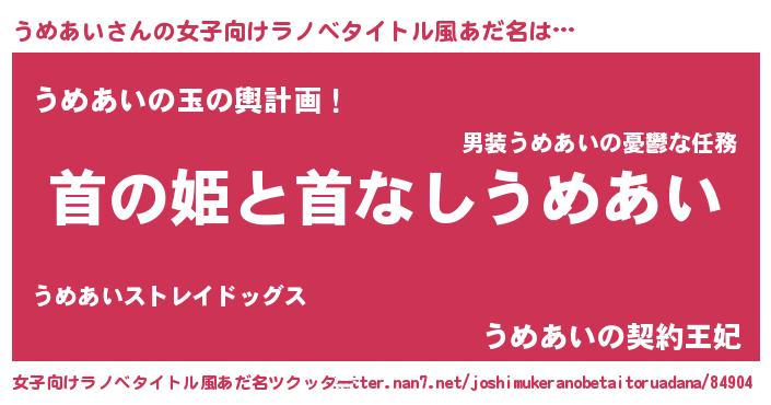 | 男性向けラノベタイトル風あだ名 | 『はたらくうめあいさま!』 |