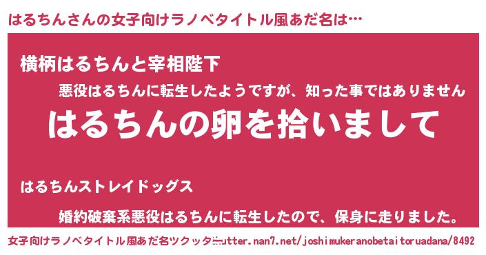 | 胡散臭い通販商品みたいなあだ名 | 『伝統あるサプリメント…その名も「はるちん」』 |