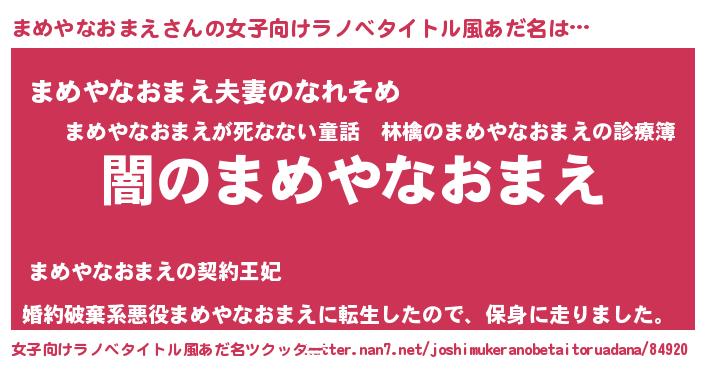 | 意味不明あだ名 | 『自称まめやなおまえ』 |