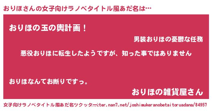 | 男性向けラノベタイトル風あだ名 | 『この素晴らしい世界におりほを!』 |