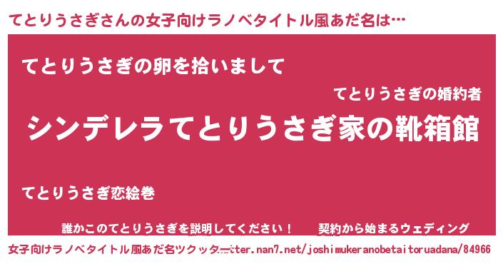 | 意味不明あだ名 | 『とにかく怪しいてとりうさぎ』 |
