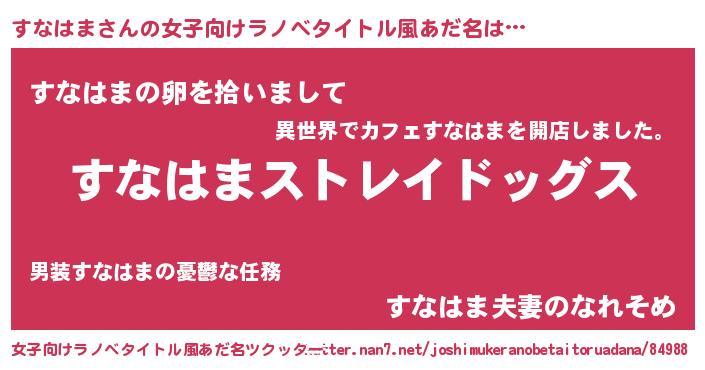 | ヒーロー風カッコイイあだ名 | 『究極戦士スナハマ』『炎刃騎士スナ』 |