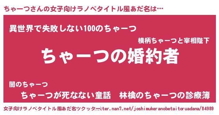 | 意味不明あだ名 | 『ちゃーつフォーエバー』『自称ちゃーつ』 |