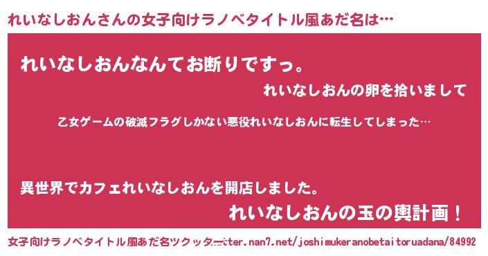 | 男性向けラノベタイトル風あだ名 | 『魔弾の王とれいなしおん』 |