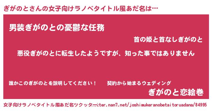 | 男性向けラノベタイトル風あだ名 | 『この素晴らしい世界にぎがのとを!』 |