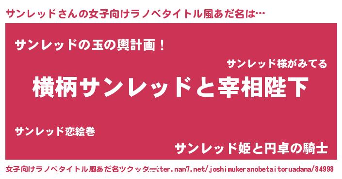 | 男性向けラノベタイトル風あだ名 | 『サンレッドに滅ぼされるだけの簡単なお仕事です』 |