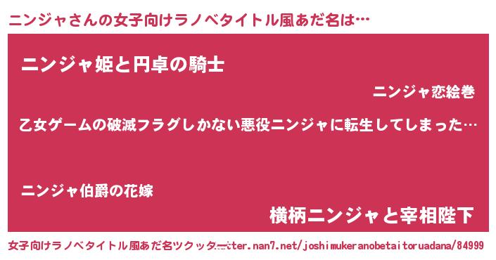 | 男性向けラノベタイトル風あだ名 | 『魔弾の王とニンジャ』『ニンジャの憂鬱』 |