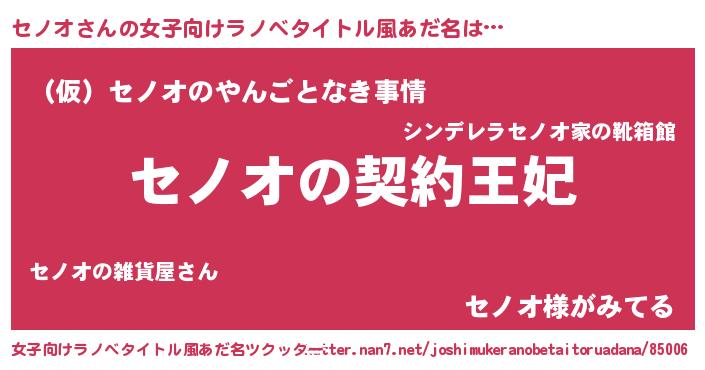 | 男性向けラノベタイトル風あだ名 | 『セノオという概念が存在しない退屈な世界 』 |