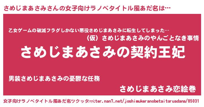 | 男性向けラノベタイトル風あだ名 | 『さめじまあさみという概念が存在しない退屈な世界 』 |