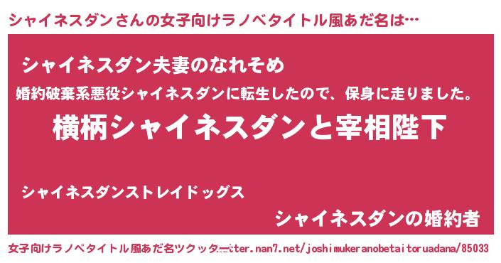 | 男性向けラノベタイトル風あだ名 | 『シャイネスダンに滅ぼされるだけの簡単なお仕事です』 |