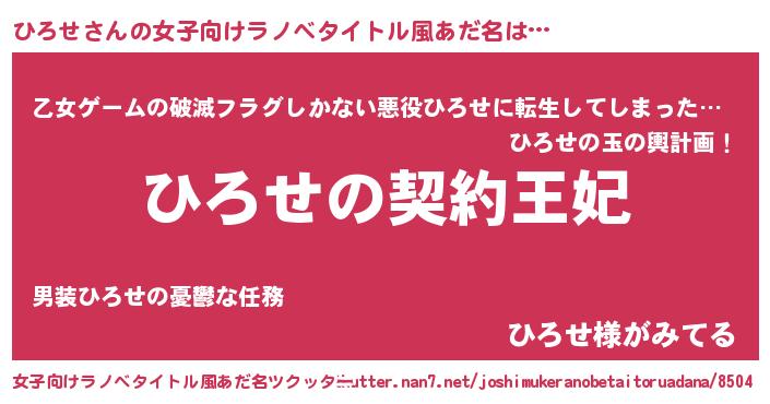 | 意味不明あだ名 | 『永久保存ひろせ』『もやし科ひろせ属』 |