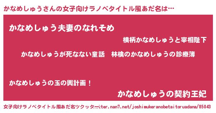 | ヘコむあだ名 | 『かなめしゅう(苦笑)』『かなもー』 |