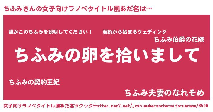 | 胡散臭い通販商品みたいなあだ名 | 『伝統あるサプリメント…その名も「ちふみ」』 |