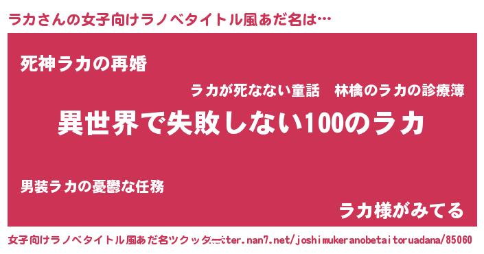 | ヘコむあだ名 | 『ラカ(笑)』『ラカぷりん』 |