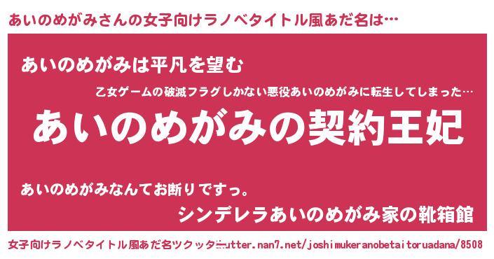 | 男性向けラノベタイトル風あだ名 | 『誰もが恐れるあのあいのめがみが、ぼくの専属メイドになるようです。』 |