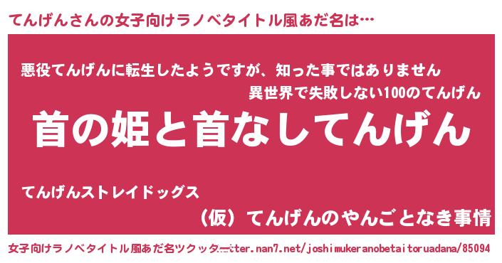 | 意味不明あだ名 | 『住所不定無職てんげん(79歳)』 |