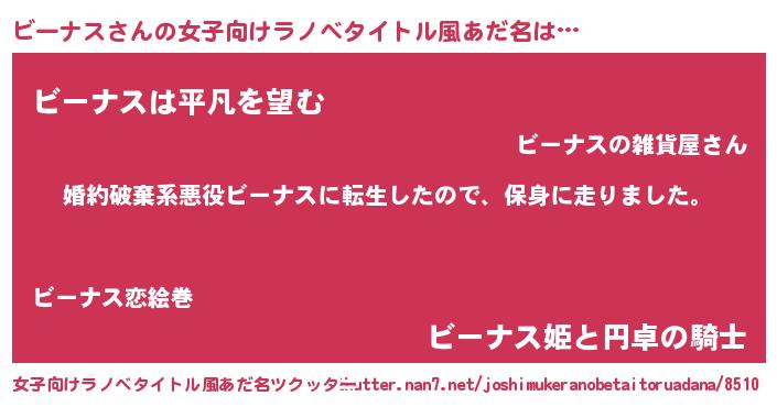 | 男性向けラノベタイトル風あだ名 | 『ビーナススレイヤー』 |