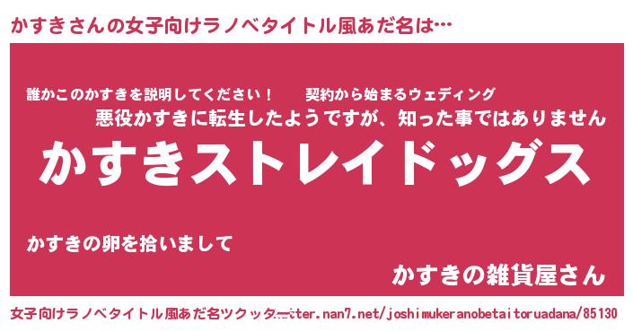 | 男性向けラノベタイトル風あだ名 | 『Re:かすきから始める異世界生活』 |