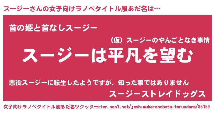 | 胡散臭い通販商品みたいなあだ名 | 『信頼と実績のサプリメント…その名も「スージー」』 |