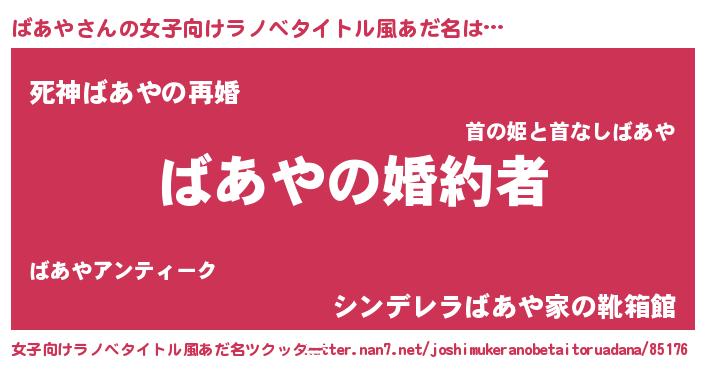 | 胡散臭い通販商品みたいなあだ名 | 『運命の人と巡り会える高級そうな絵画…その名も「ばあや」』 |