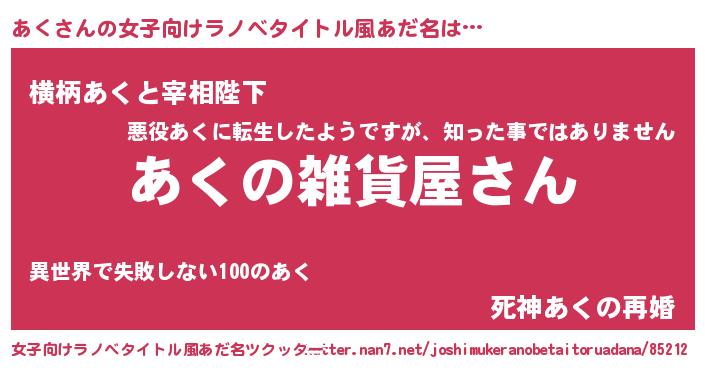 | 男性向けラノベタイトル風あだ名 | 『やはりあくの青春ラブコメはまちがっている 』 |