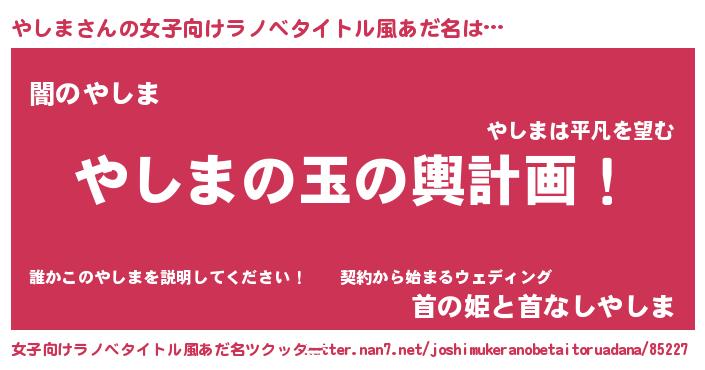 | ヒーロー風カッコイイあだ名 | 『最強戦士ヤシマ』『幻影騎士ヤシ』 |