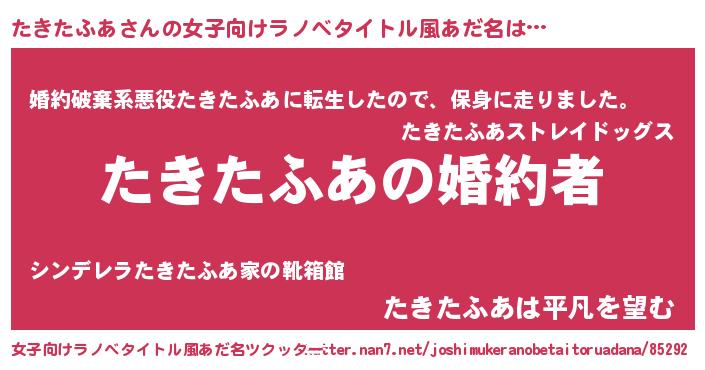 | 意味不明あだ名 | 『たきたふあフォーエバー』 |