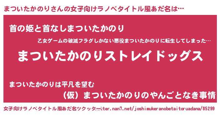 | 男性向けラノベタイトル風あだ名 | 『Re:まついたかのりから始める異世界生活』 |