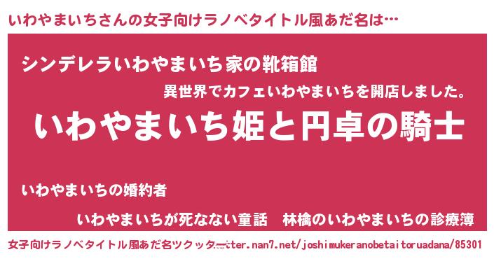 | 男性向けラノベタイトル風あだ名 | 『イワヤマイチアートオンライン』 |