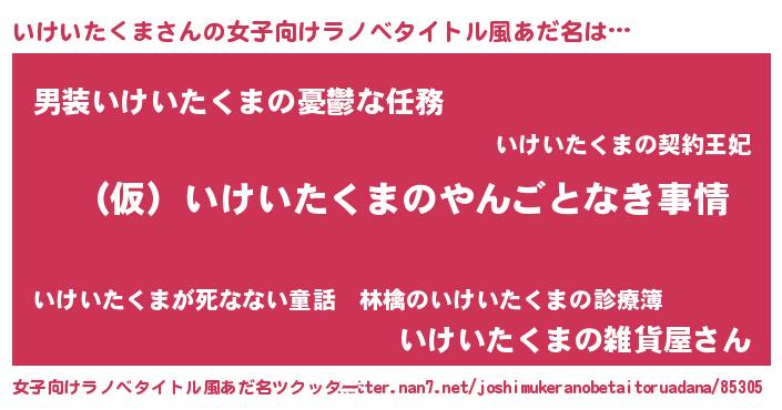 | 男性向けラノベタイトル風あだ名 | 『いけいたくまの憂鬱』 |
