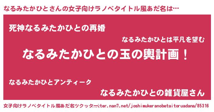 | 胡散臭い通販商品みたいなあだ名 | 『お金では代えられない隕石のかけら…その名も「なるみたかひと」』 |
