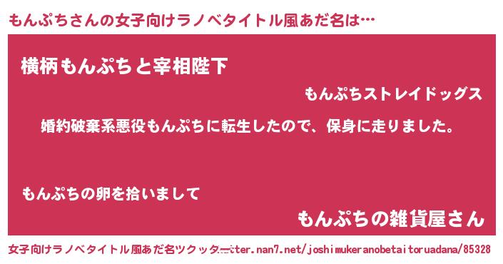 | 男性向けラノベタイトル風あだ名 | 『モンプチスレイヤー』 |