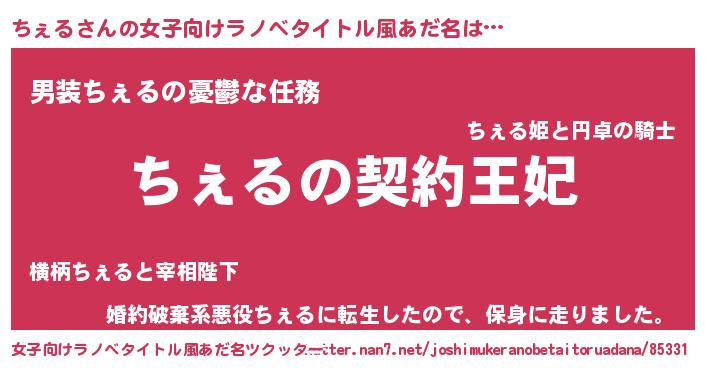 | 胡散臭い通販商品みたいなあだ名 | 『来世でも幸せになれる健康食品…その名も「ちぇる」』 |