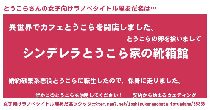 | ヘコむあだ名 | 『とうこら(笑)』『とうもー』『豆乳』 |