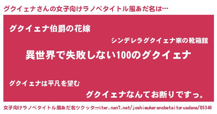 | 男性向けラノベタイトル風あだ名 | 『グクイェナという概念が存在しない退屈な世界 』 |