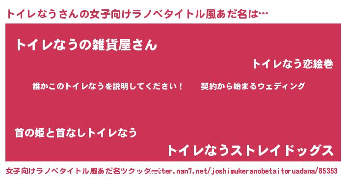 | 胡散臭い通販商品みたいなあだ名 | 『億万長者になれるブレスレット…その名も「トイレなう」』 |