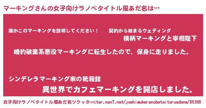 | 胡散臭い通販商品みたいなあだ名 | 『モテモテ間違いなし霊験あらたかなお札…その名も「マーキング」』 |