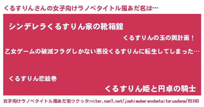 | 男性向けラノベタイトル風あだ名 | 『この素晴らしい世界にくるすりんを!』 |