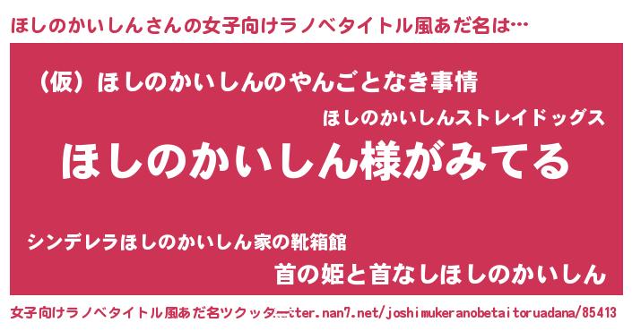 | 男性向けラノベタイトル風あだ名 | 『ほしのかいしんの嫁は女の子じゃないと思った?』 |