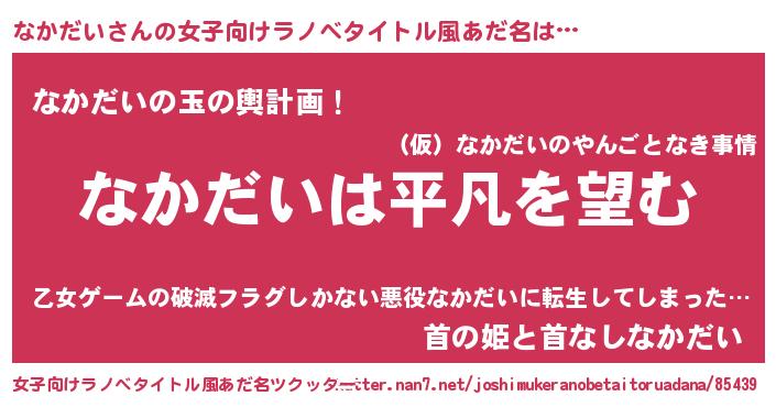 | 胡散臭い通販商品みたいなあだ名 | 『信頼と実績のサプリメント…その名も「なかだい」』 |