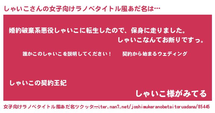| 意味不明あだ名 | 『ペロリンしゃいこ』『自称しゃいこ』 |