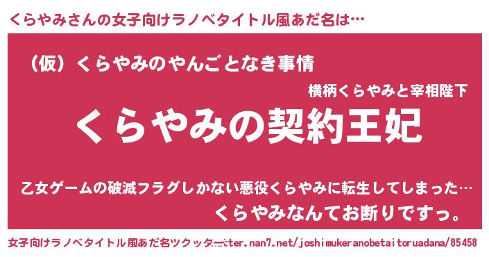 | 恥ずかしいあだ名 | 『くらちん』『プリティーくらやみ』 |