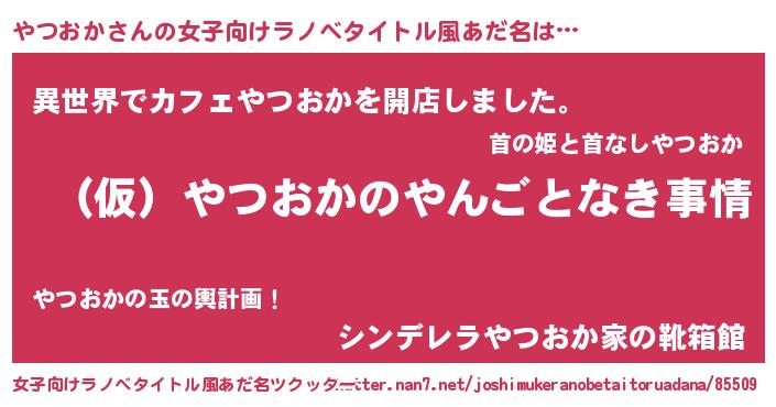 | 胡散臭い通販商品みたいなあだ名 | 『必ず成功するブレスレット…その名も「やつおか」』 |