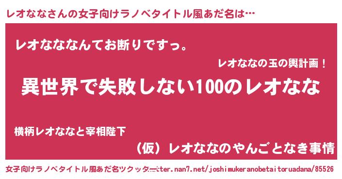 | 男性向けラノベタイトル風あだ名 | 『レオななという概念が存在しない退屈な世界 』 |