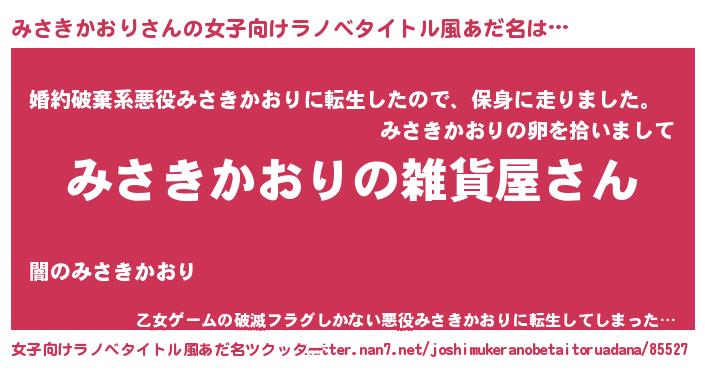 | 男性向けラノベタイトル風あだ名 | 『やはりみさきかおりの青春ラブコメはまちがっている 』 |